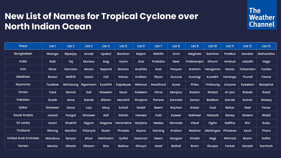 Cyclone Name List 2024 India