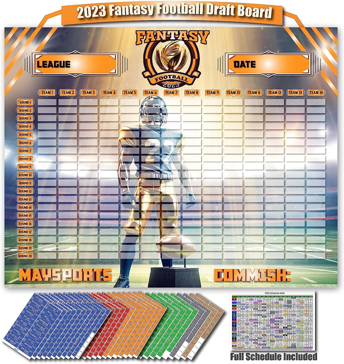 Amazon.: GSM Brands Fantasy Football Draft Board 2023 2024 Kit